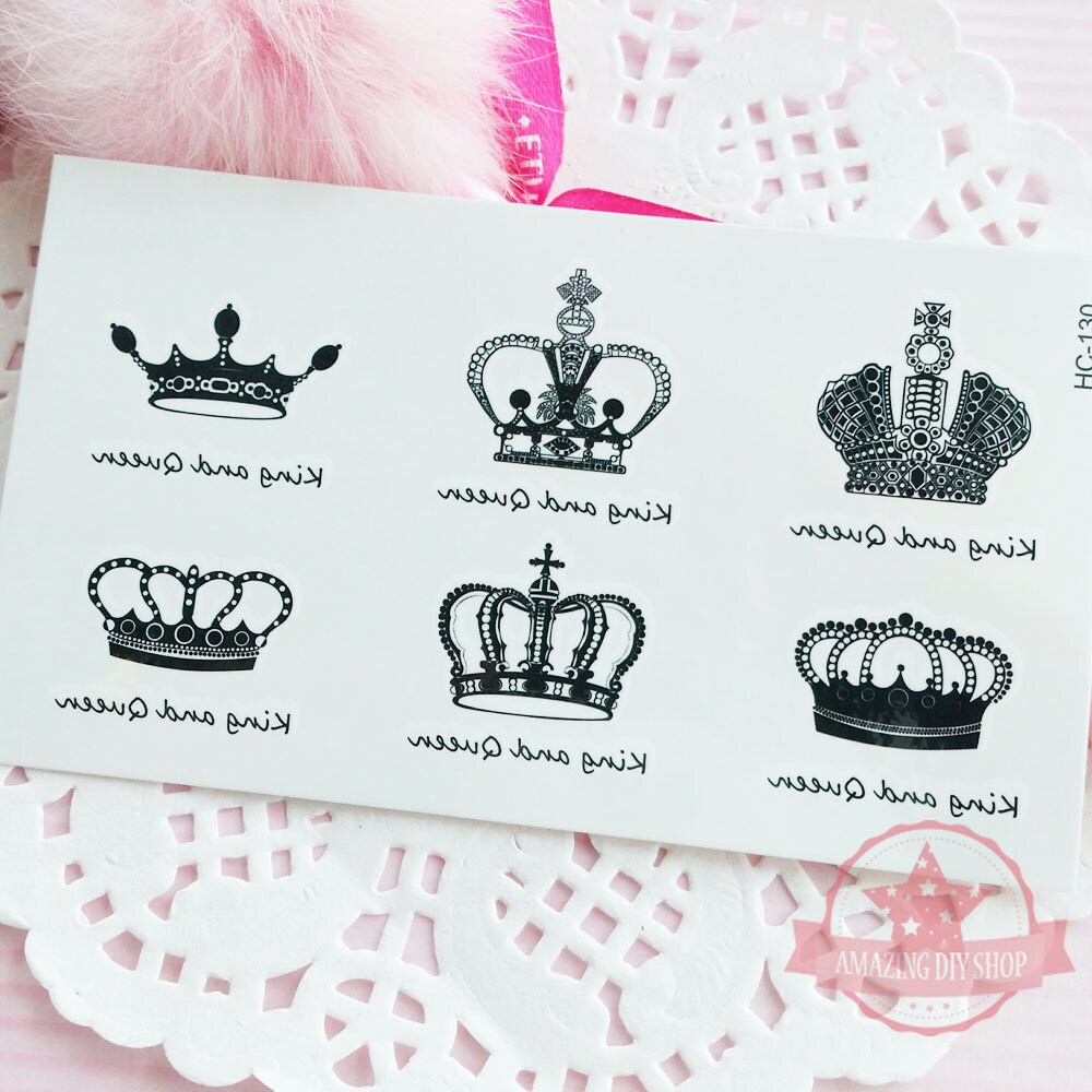Crown King And Queen 6 Tattoos Temporary Black Hc 130 Etsy Ireland